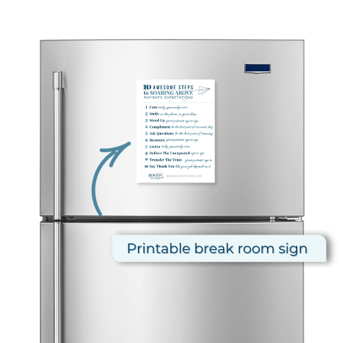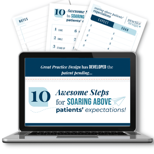Great Practice Design’s 10 AWESOME STEPS for SOARING ABOVE Patients’ Expectations Course ensures that your team understands what it takes to compete in today’s challenging medical practice environment. At the end of this training, your team will be able to turn routine office visits into an unexpected, extraordinary experience that will make your practice more memorable, likable, reviewable and referable.