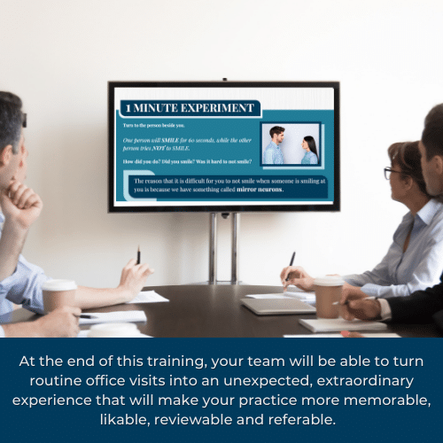 In this course, your team will explore current patients’ expectations and discover 10 EASY, actionable, AWESOME STEPS to SOAR ABOVE these expectations through video presentations, memorable experiential learning activities, and a next steps action card.